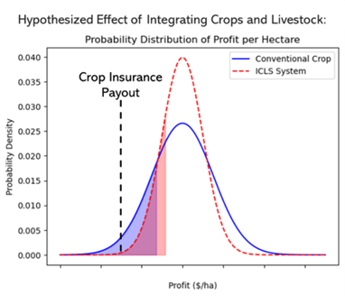 This project centers around evaluating the economic and soil health impacts of integrated-crop livestock systems. In particular, we aim to understand how integrating crops and livestock on the same land can potentially improve soil health and decrease income uncertainty in volatile market conditions. In this context, we further consider how Earth Observation (EO) technologies may support improved monitoring protocols fundamental to risk assessment in agricultural land.